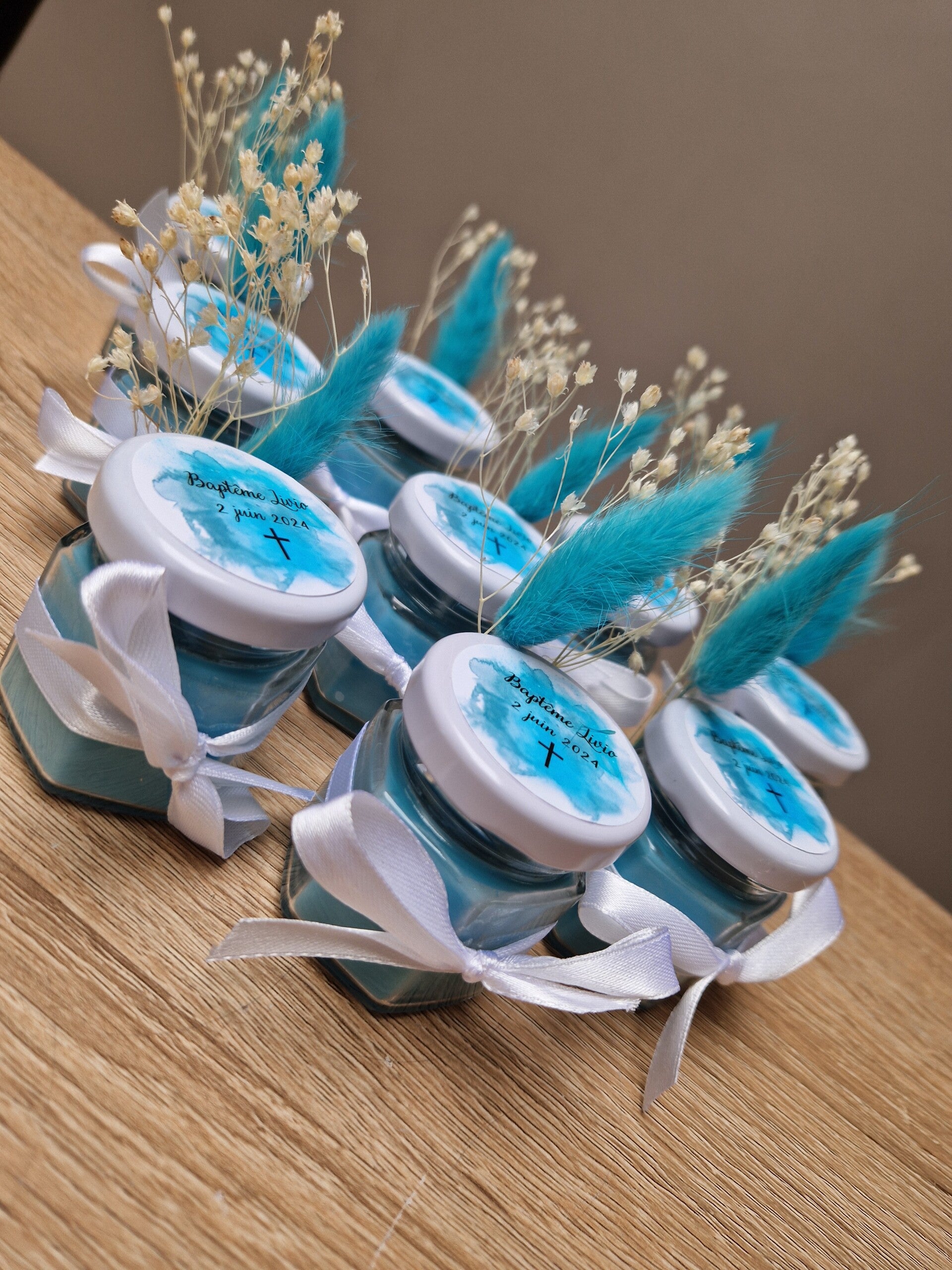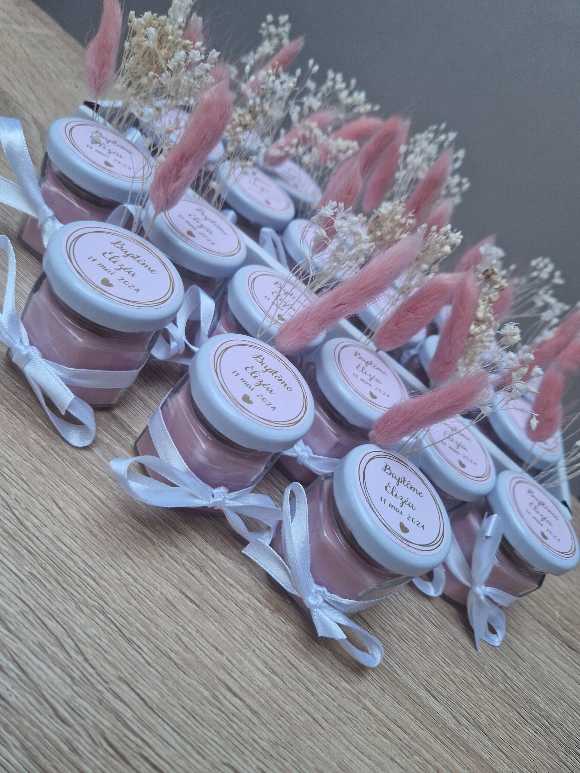 Découvrez nos créations de petites bougies artisanales, parfaites pour sublimer vos occasions spéciales. Chaque bougie est soigneusement confectionnée à la main et enrichie de magnifiques fleurs séchées, ajoutant une touche de beauté naturelle et intemporelle. Que ce soit pour un baptême, un anniversaire, un mariage ou toute autre célébration, ces bougies personnalisées deviennent des cadeaux uniques et mémorables. Elles peuvent être personnalisées votre convenance, offrant une personnalisation complète qui marquera l’événement de manière encore plus personnelle. Allumez une bougie et laissez son parfum délicat et sa lumière douce envahir l’espace, créant une ambiance chaleureuse et inoubliable.
